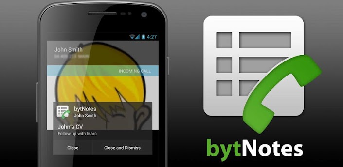 bytNotes is a simple notepad application with a very handy twist. It allows you to create notes and link them to multiple contacts from your address book. If any of these contacts call you or you call any of them, the related notes are displayed in an overlay for you to read before you start talking.